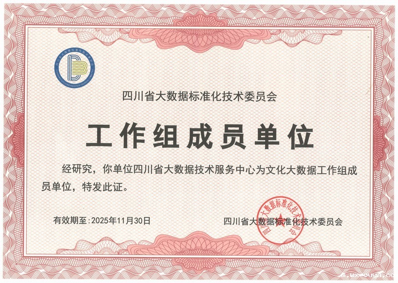 省大数据技术服务中心成为首批四川省标准化技术委员会文化大数据工作组成员单位